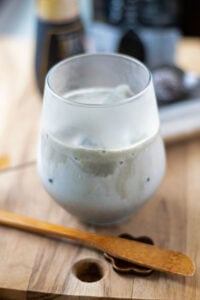 For my black sesame latte, I use a mix of black sesame paste and white sesame paste. The white sesame softens the bitterness and makes the flavor rounder.